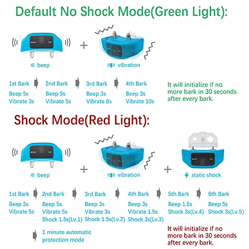 4. Use "beep vibration" mode as daily training, "Shock" function is optional, If needed, one button switch to "beep vibration shock" mode