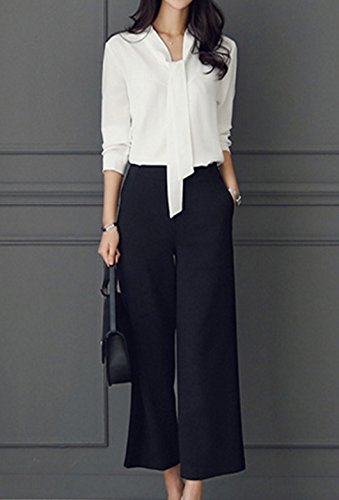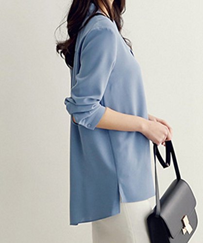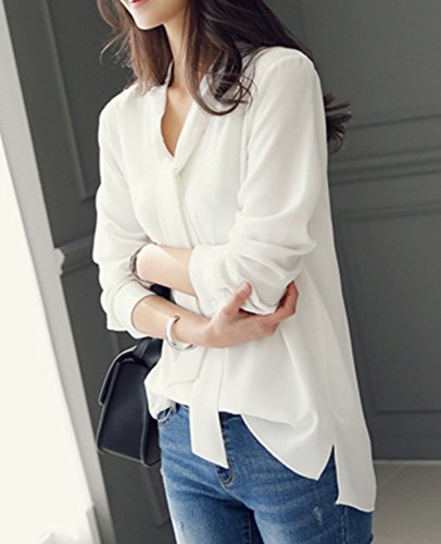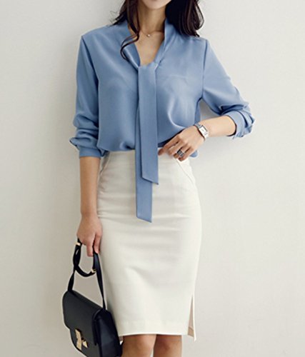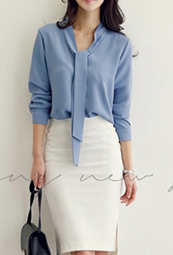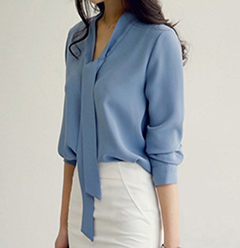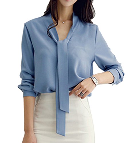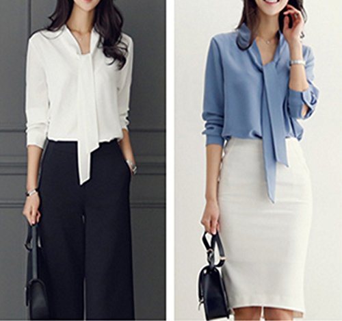 -. Title : ELPIS レディース ボウタイ リボン Vネック ブラウス 長袖 シフォン シャツ オフィス