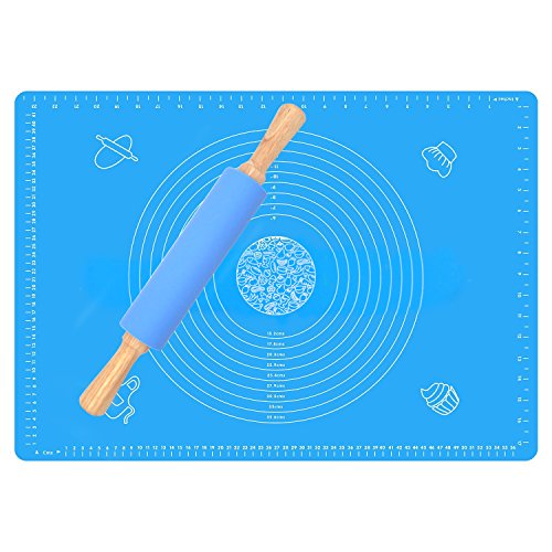 JamHoo Non-Stick Silicone Rolling Pin & Large Silicone Pastry Mat (25 X 17") Non-Slip Pastry Sheet For Rolling Dough and Baking (X-Large)