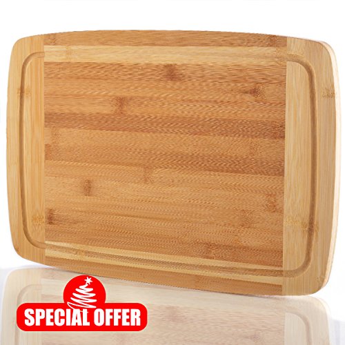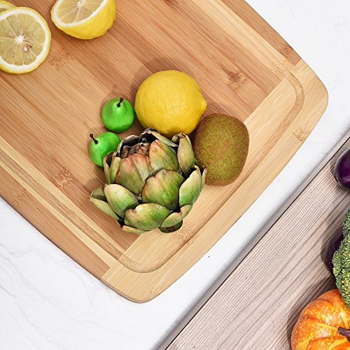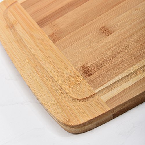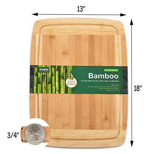 Comllen Extra Large Bamboo Wooden Cutting Board, 18" x 13" x 0.75" Serving Tray with Drip Groove