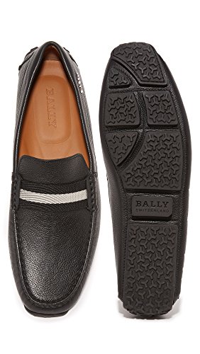 Product DescriptionA striped, woven band crosses the tongue of these pebbled-leather Bally drivers. Branding at the side. Full leather sock liner. Rubber grips extend from the leather sole to the heel.0