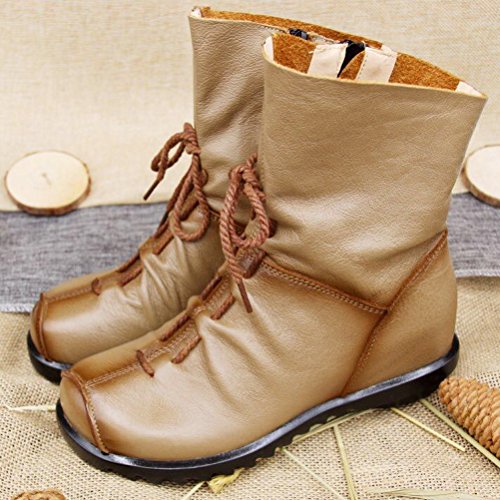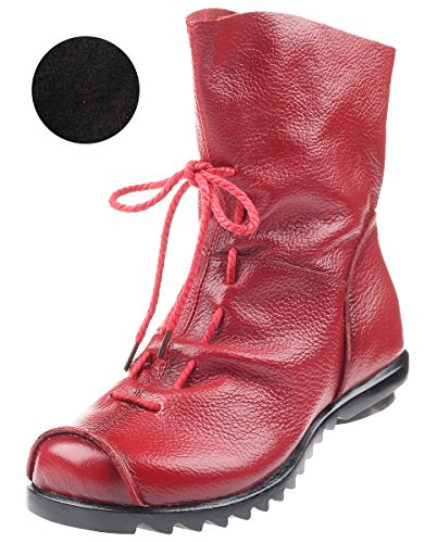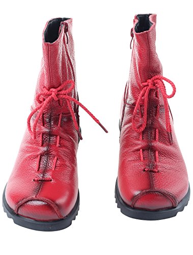| Mordenmiss Women's Side Zipper Leather Ankle Toe Cap Boot |