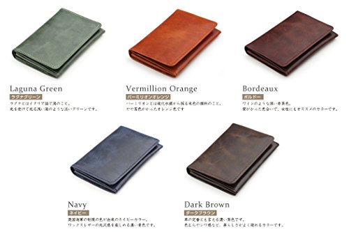 -. Feature : 日本製 / SIZE : H 7.5cm × W 11cm × D 1.7cm / MATERIAL : 牛革・シャンタン生地(裏地) / COLOR : ラグナグリーン バーミリオンオレンジ ボルドー ダークブラウン ネイビー / ※天然皮革製品のため細かいキズや汚れがある場合がございます