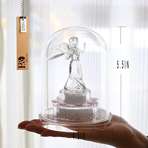 -. Title : H&D 5.5-Inch Clear Crystal Angel Sculpture Ornament in a Glass Dome for Home Office Decor