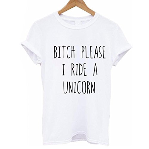 -. Title : Blouse, Kwok Women's Tshirt BITCH PLEASE I RIDE A UNICORN Cotton Blouse