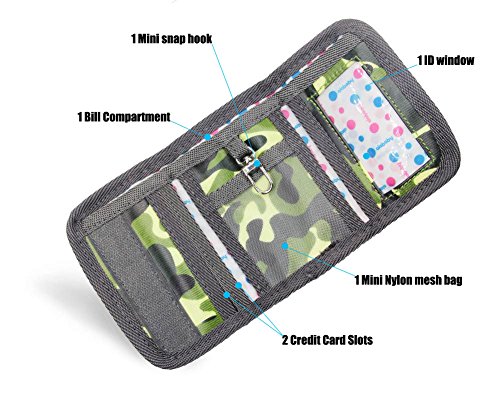 - ✔LARGE CAPACITY AND PRACTICAL. This cute wallet features 1 ID window,1 Zipper coin purse on the surface,2 Credit card slots,1 big bill compartment and 1 mini nylon mesh bag,well secure all your belongings and small stuff.You can use this wallet to carry credit cards,cash,student IDs,coins and family photo.