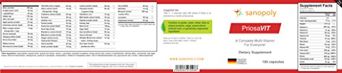 As a comprehensive multi-vitamin for everybody, Priosa VIT contains more than 80 vitamins, plant extracts, and vital substances. What makes Priosa VIT so special? Our vitamins are gathered from natural sources like nuts, fruits, legumes, vegetables, and herbs. All of our sources are organic and non-GMO and provide you with all your necessary nutrients in a convenient capsule with a long shelf-life. The importance of vitamins is widely known. However, most of us are not optimally supplied. Studies show that the nutrient density of our foods are declining. The result: We eat more servings of fruits and vegetables, but still lack the necessary nutrients to keep our metabolism healthy. Vitamins and micronutrients are in constant interplay. For example, high dosage single vitamins might be useful to treat specific nutrient deficiencies in cases of pregnancy or osteoporosis. Priosa VIT, on the other hand, offers a comprehensive approach. With 4 to 5 capsules that you can take at different times during the day, you strengthen your vitamin-dependent metabolic processes, neural and mental functions, as well as muscle and heart functions. Our formula was carefully developed and ensures optimal supply without under- or overdosing. Our product is lactose, gluten, and GMO free. It is ideal to supplement vegan and vegetarian lifestyles, as certain vitamins can only be found in animal products or cannot sufficiently be found in our produce.Feature