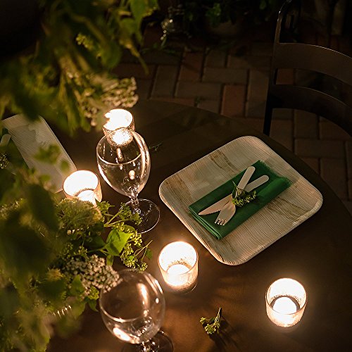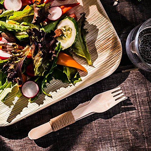 - Pairs wonderfully with biodegradable dinnerware like palm leaf plates or bamboo plates.