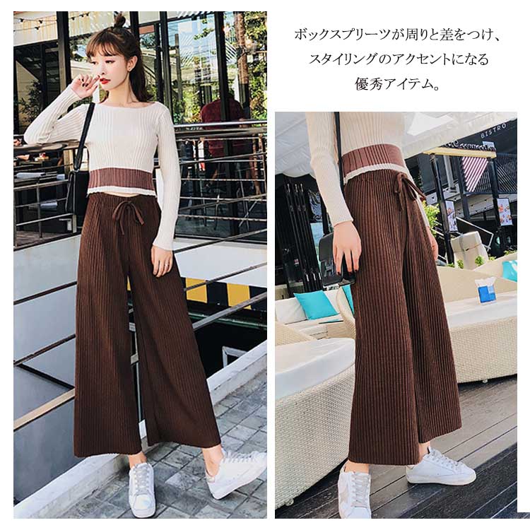 | シーズンムード高めるプリーツワイドパンツ♪オールさシーズン対応しやすい9分丈。ボックスプリーツが周りと差をつけ、スタイリングのアクセントになる優秀アイテム。 | |