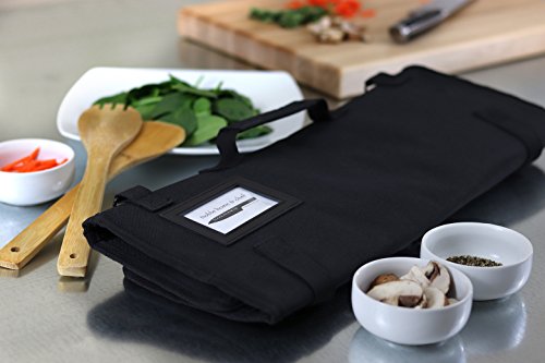 - EASILY ID YOUR KNIFE STORAGE BAG: A slot for your nametag or business cards means you can easily identify your knife roll from other chefs’. Also throw in some extra business cards for referrals!