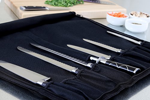 - SAFE AND SECURE – Our chef’s bag features a tough canvas cover flap as extra protection for your knives, a zipper to secure the knives safely inside, and adjustable straps to make sure they stay put. Roll it up, zip it up, and you’re safely on your way!