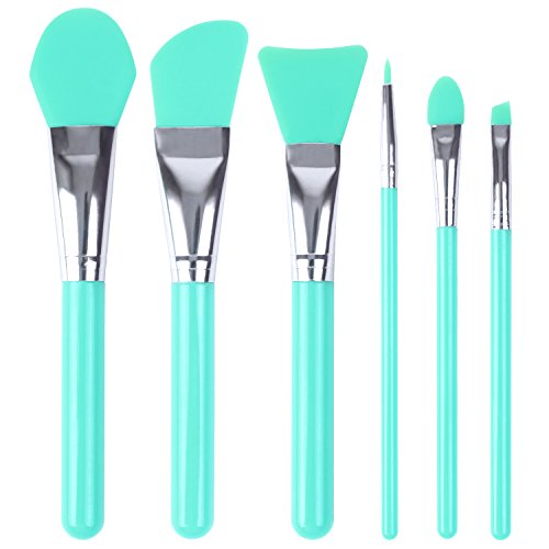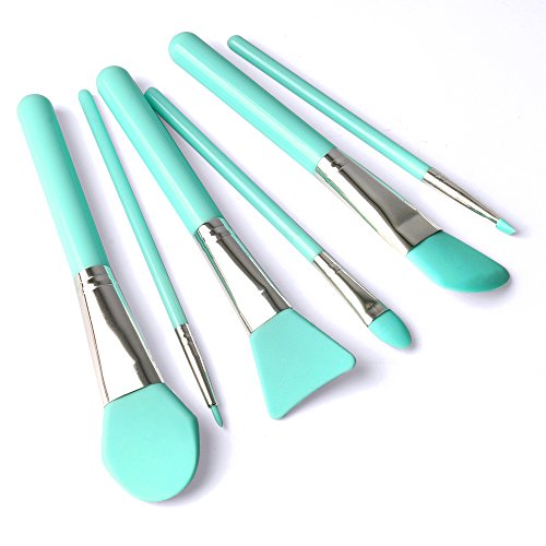 Face Mask Brush, ESARORA Silicone Cosmetic Brush Set of 6 Face Mask Brush set and Eye makeup Brushes (Green)