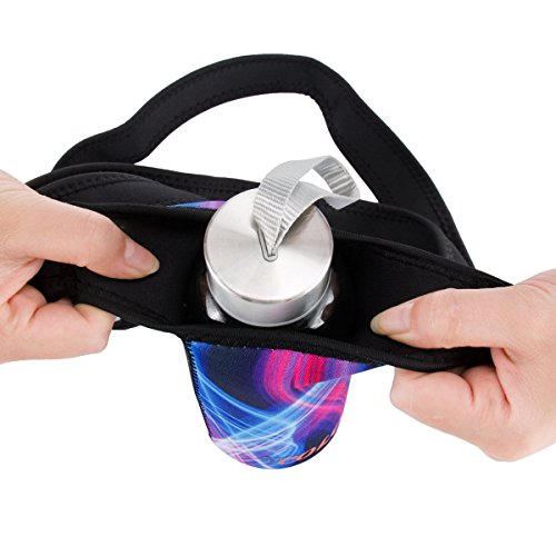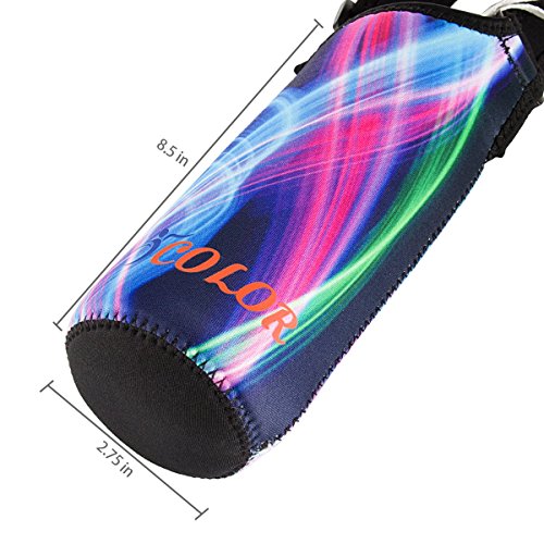 INSULATED NEOPRENE MATERIAL:Our ICOLOR water bottle Carrier is make of thick 4mm Neoprene material,which is lightweight, super soft and comfortable.The material stretches to Compatible with standard size bottles with the diameter of 3 inches or less ( THE WATER BOTTLE ISN'T INCLUDING )