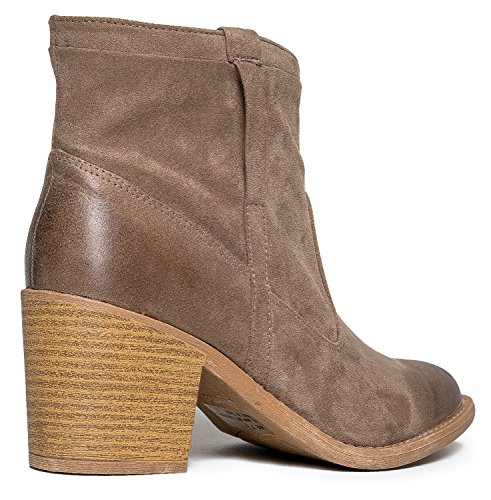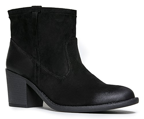 Product Description Pull on these wooden heel booties for an instant status upgrade! Western ankle boots have a distressed finish at the toe with decorative stitching and pull tab details. 0