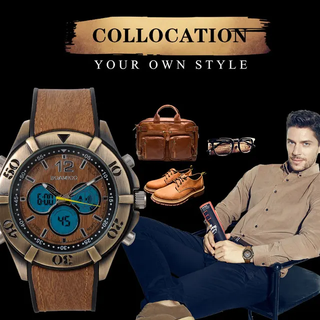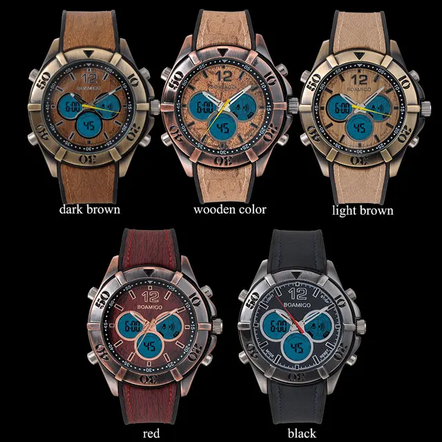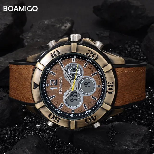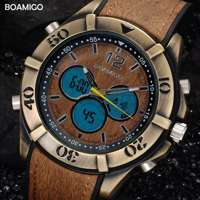 | [해외] 남성 듀얼 디스플레이 스포츠 시계 아날로그 디지털 LED 석영 시계 207 BOAMIGO 브랜드 선물 clockRetro 빈티지 펑크 시계 |