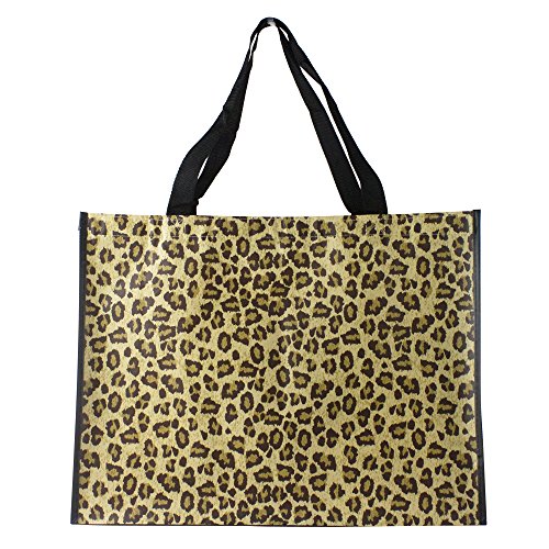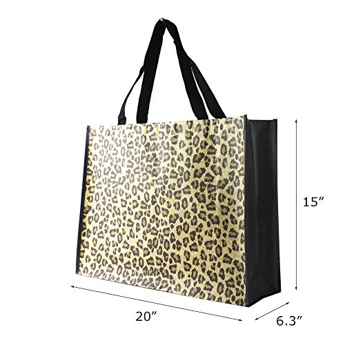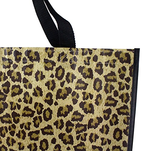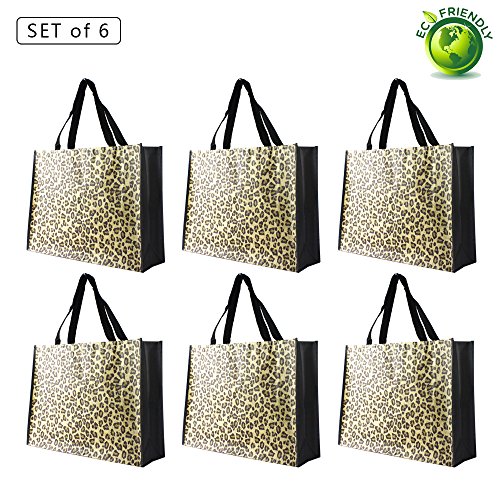 Reusable Grocery Bags-Supermarket Shopping Bags Large/Medium Non-Woven Fold Flat Wipe Clean (6, Leopard Print)