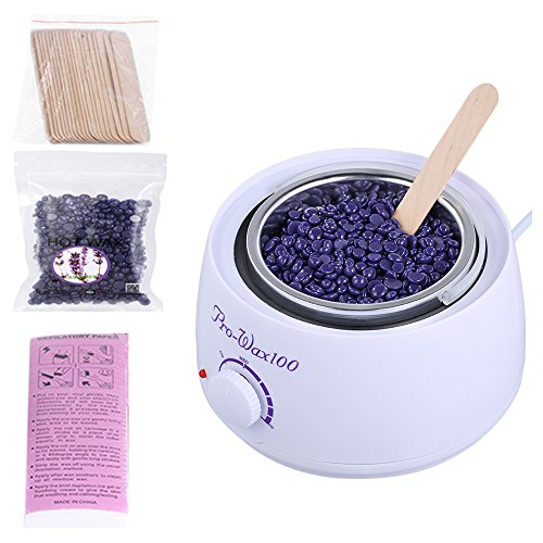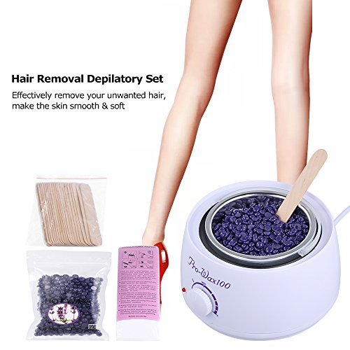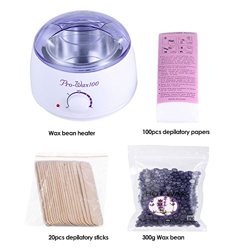 - Complete hair removal set, include a wax bean heater, one bag wax bean, 20 depilatory sticks, 100pcs depilatory papers.