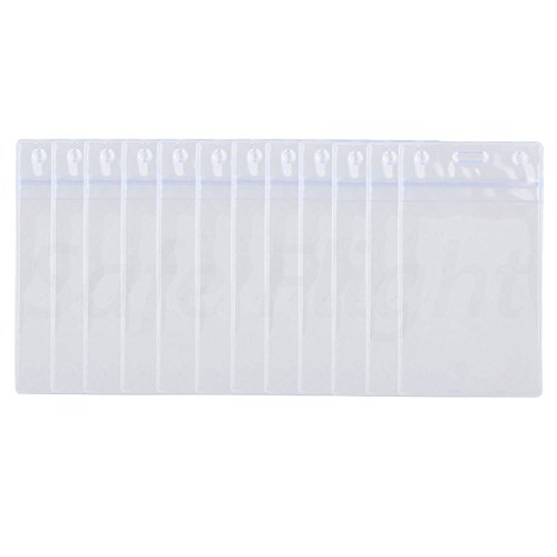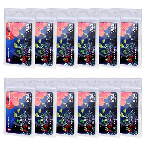12 pack of vertical, transparent credit card holders, with slot and chain holes to connect to a lanyard, badge clip or chain (sold separatly).