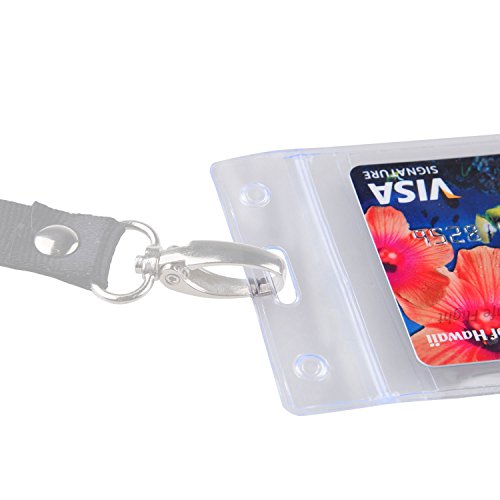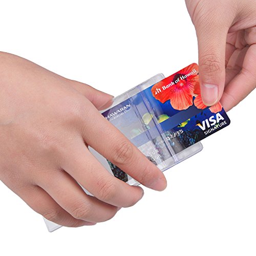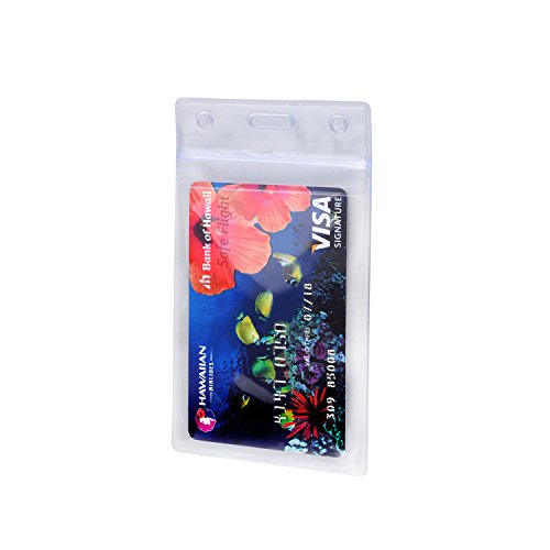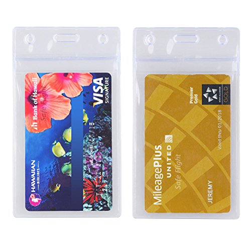 Card Holder, 12 Pack, Vertical - Clear Transparent - Reversible - for Credit Card, ID Card, Business Card, Driver's License, etc. - Slot/holes for Lanyard, Badge Clip, Chain - Safe Flight Retail Pack
