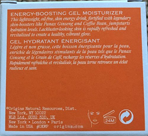 -. Binding : Misc. -. Brand : Origins -. Feature : What it is: A facial cream that hydrates instantly to rev up radiance. / What it is formulated to do: This lightweight, oil-free facial cream is fortified with legendary skin-boosters like panax ginseng and coffee bean to jumpstart hydration levels. Lackluster-looking skin is rapidly refreshed and revitalized to create a healthy, vibrant glow. / What it is formulated WITHOUT: - Parabens, - Sulfates, - Phthalates. / Sested Usage: Use morning and evening. -. IsAdultProduct : 0 -. Model : SHOMALVI4627 -. MPN : SHOMALVIN4627 -. PackageQuantity : 1 -. PartNumber : SHOMALVIN4627 -. ProductGroup : Beauty -. ProductTypeName : BEAUTY -. Title : Origins Ginzing Energy Boosting Gel Moisturizer (Gel Hydratant Energisant) 1.7oz/50ml