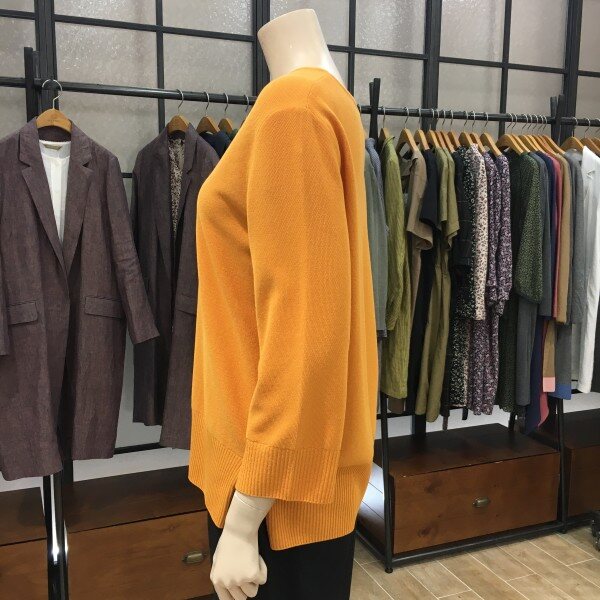 어디에나 멋스럽게 어울리는 브이넥 니트! 짜임이 촘촘하고 얇기때문에 통기성이 좋아 봄, 가을 시즌에 가볍게 입기 좋아요! 밑단은 세로 골지 시보리로 마감을 해주어 슬림한 밑단으로 연출했어요 ^^ 전체적으로 여유있게 피팅되어 부담없이 편하게 입기 좋답니다~ 포인트 되는 진옐로우 느낌의 오렌지컬러감으로 다양하게 코디하기 좋은 니트! 데일리로 예쁘게 매치해 보세요. 총장길이는 55사이즈 기준으로 66cm입니다