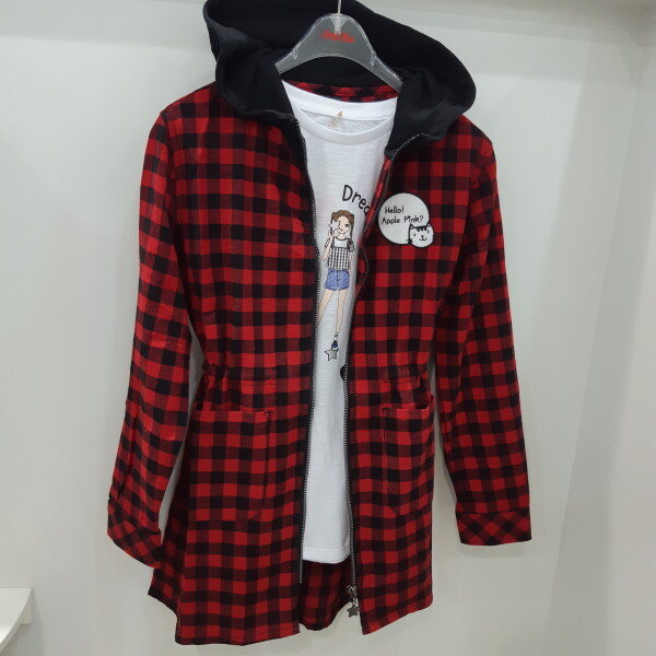 후드체크형 야상으로 허리부분에 스프링이 되어있어서 허리조절가능한 아이템
