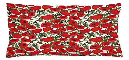 Poppy Throw Pillow Cushion Cover by Ambesonne, Abstract Flower Pattern with Garden Foliage Bota...
