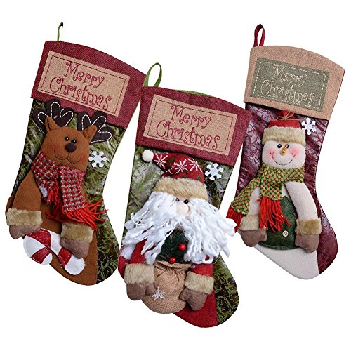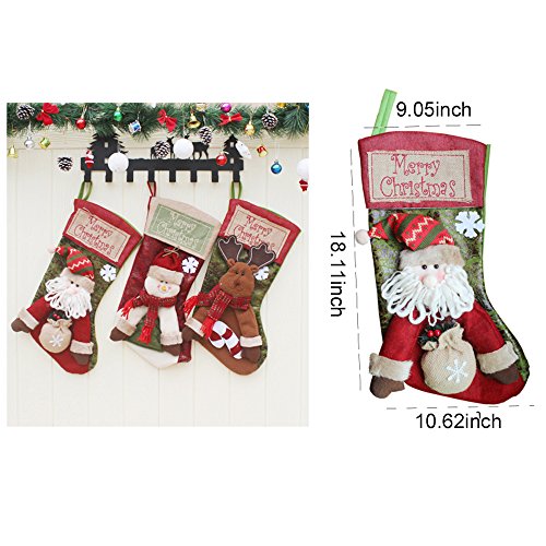 Design: Adorable Detailed soft 3D designs pattern won't easily fray or fall apart.Plush large Christmas stockings.