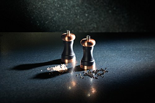 - This salt mill matches cool black beechwood with warm copper details. It's striking, trendy and perfect for cooking or dining