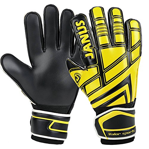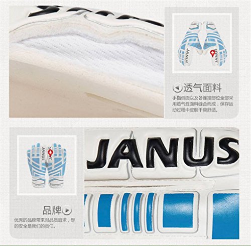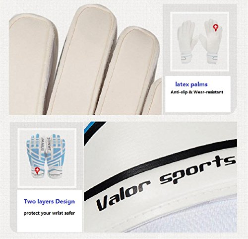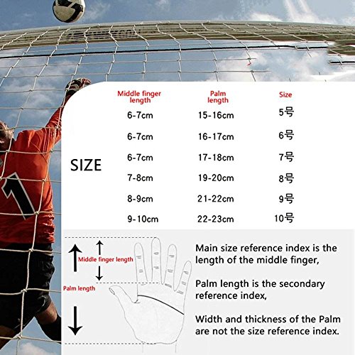 Binding : Misc. Product Description Check the Size picture to Choose Your Size So if you have very big or small hands for your size please adjust your choice to match. High quality Latex material Full latex gloves, palm and back of the hand are all made from latex, that make you feel more fit your hand and feel comfortable. Finger protection system Embedded fingersave insert the gloves, which is disassemble, that to avoid your fingers injury caused by crash, but will reduce a little flexibility. Caring for the goalkeeping gloves Caring for the goalkeeping gloves is not difficult, with little more than a quick wipe with a damp cloth after use before allowing them to dry naturally. There is no need to use detergents, and the gloves should be stored away from direct heat sources and sunlight when not in use. Extend the service life: Avoid washing and exposure to accelerated emulsion oxidation. Tile storage gloves, do not fold and squeeze.