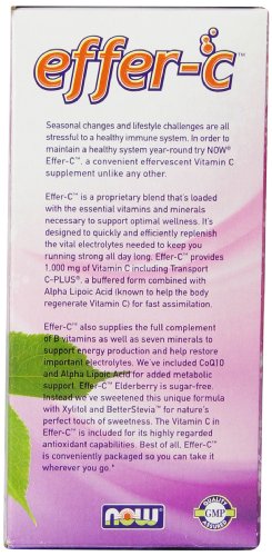 ReleaseDate : 2013-07-01 Studio : Now Foods Publisher : Now Foods Binding : Health and Beauty Product Description Now foods' effer-C elderberry is a convenient effervescent vitamin C supplement unlike any other, which was designed to gently, but quickly replenish the vital electrolytes. 0