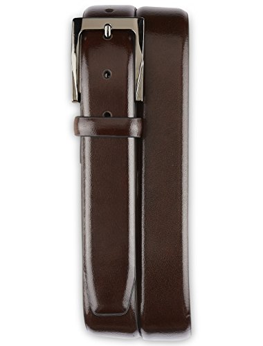 Binding : Apparel Product Description Classic leather dress belt is finished with feathered edges and a gunmetal-finish buckle. Reinforced holes for added durability, genuine leather, rectangular brushed-silvertone buckle, leather keeper, feathered edges, reinforced holes, 35mm wide, imported 0