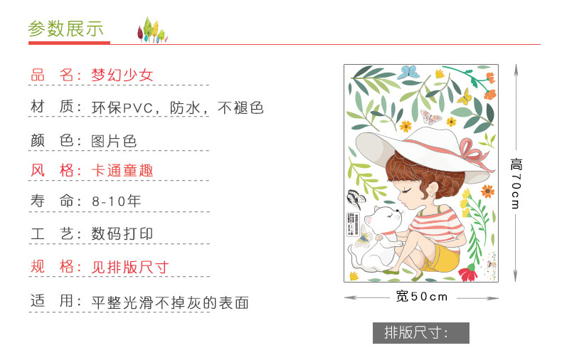 梦幻少女儿童卧室幼儿园墙贴贴画墙壁贴纸儿童环保可移除墙贴纸