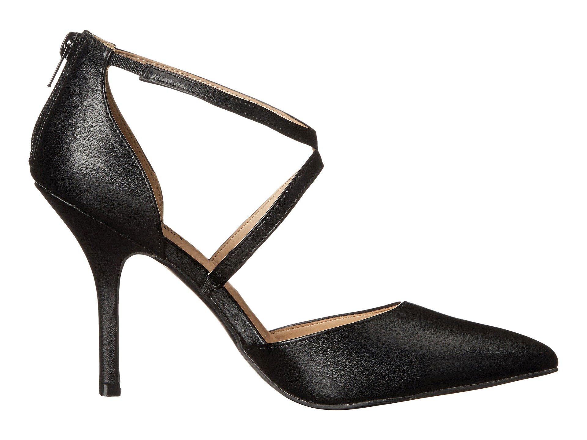 | Product Information SKU: #8597838All eyes on you as you make an entrance in the Nine West? Blonkhina!Smooth synthetic upper.Criss-cross strap details. Zip-up heel for easy wear.Pointed toe.Man-made lining.Lightly cushioned man-made footbed.Wrapped heel.Man-made sole.Imported.Product measurements were taken using size 9, width M. Please note that measurements may vary by size.Weight of footwear is based on a single item, not a pair.Measurements: Heel Height: 3 3?4 in Weight: 9 oz |