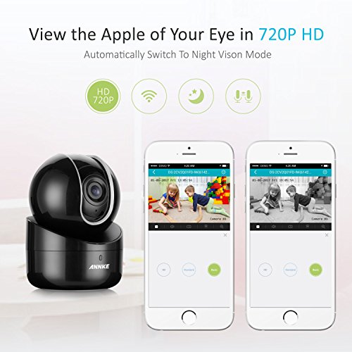 -. Binding : Electronics -. Brand : ANNKE -. Feature : Stunning 720P Video ResolutionThe high performance camera brings great detail in everything it captures in 1280 x 720p Please notice if camera spins when connecting to power If not please change another adapter to have a try / Clear Two Way Audio Build in microphone and speakers allow you to talk to and hear from your loved ones remotely / Mobile Notification Alarm Get instant alarm on your smartphone or tablet the moment unexpected movement is detected / One Touch Configuration Get your camera connected to Wi Fi or WPS via one touch and start video viewing in seconds Please make sure camera is plugged into router with ethernet cable and router has Internet / A sweeping view with PT With 0 degree to 355 degree pan and 20 degree to 90 degree you are free to get a sweeping view of your home and office Please check the yellow and green light on the ethernet port of the camera One should be blinking which indicates camera has connected to router successfully If not please change the ethernet port of router or another ethernet cable to have a try -. Label : ANNKE -. Manufacturer : ANNKE -. MPN : 21AE+21AF -. PackageQuantity : 1 -. PartNumber : 21AE+21AF -. ProductGroup : Photography -. ProductTypeName : SURVEILANCE_SYSTEMS -. Publisher : ANNKE -. Studio : ANNKE -. Title : ANNKE (2) 720p HD Dome Camera Baby Monitor, 1.0MP Pan&Tilt Wireless IP Security Surveillance System with Night Vision, 2-way Audio