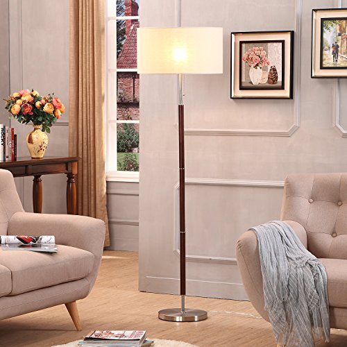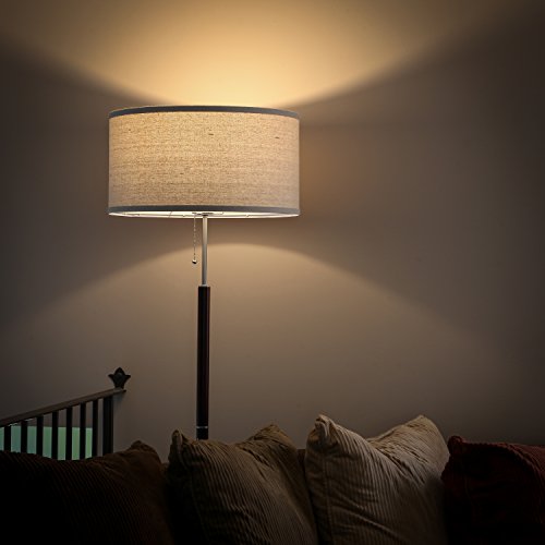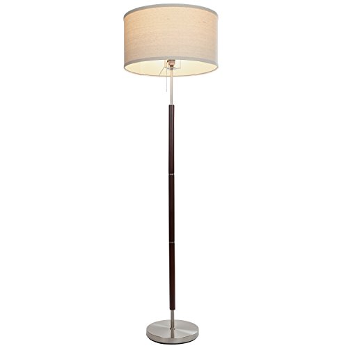 Brightech Carter LED Floor Lamp - Classy Vintage Drum Shade Lamp - Standard E26 Socket Base - Includes Brightech's Energy Efficient LightPro 9.5-Watt LED Light Bulb - Walnut Eucalyptus Wood Finish