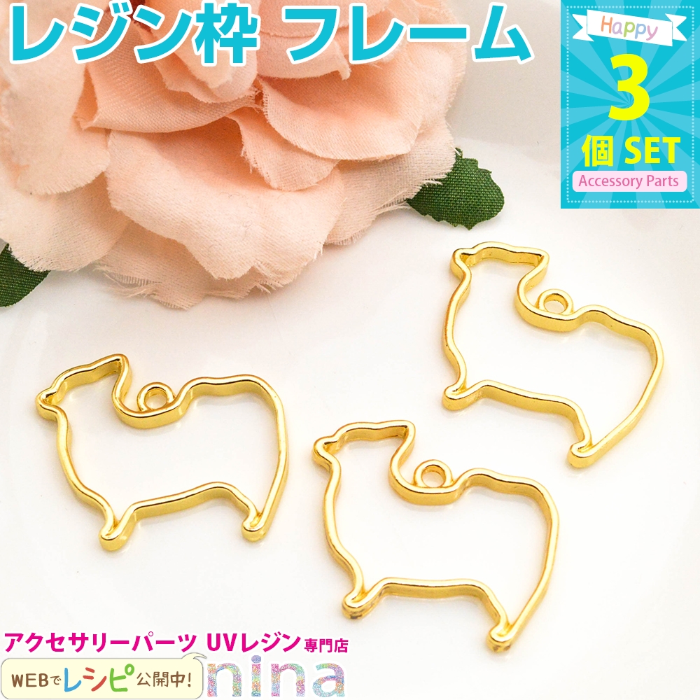 ■商品名:レジン枠 犬 ドッグ ゴールド 3個セット 5