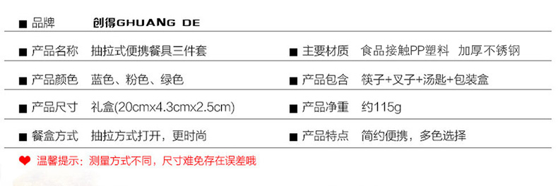 1 x Chopsticks, Fork, Spoon set with washable Oxford bag (random colour)