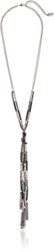 Fashion Multi Chain and Glass Bead Black Y-Shaped Necklace, 27"+3" Extender