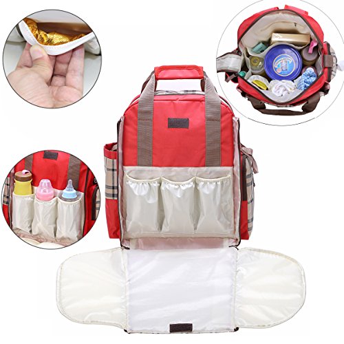 Studio : YOPINDO Publisher : YOPINDO Binding : Baby Product Product Description ♥ Bag dimensions:15.75 ×6.7 ×14.2 inches. Roomy enough for holding items you want to carry for baby. ♥ Made of high quality nylon fabric, comfortable anti-water material , guarantee your baby's healthy safety. ♥ Waterproof and durable, easy to wipe clean ♥ Ideal for both women and men. Makes a thoughtful baby shower gift! ♥ ?Considering the high quality of the material, components, finishing and overall design it is exceptional value for money.? Function: 【Lots of functional pockets】 Include a side tissue pocket, a side insulated Pockets. Three front waterproof insulated pockets for milk bottles. Five pockets for diapers, toys, etc. Two large pockets for ipad, magzine or other large things. A hidden pocket with zipper for keys. The main compartment for baby's clothes, shoes, etc. 【Changing pad】 Convenient for taking care for baby. 【Two stroller straps】 fix the bag to a stroller when you need. 【Padded shoulder straps】Adjustable shoulder straps for hassle free carrying! 【Multi Carry Ways】: You can use this bag as backpack, shoulder Bag and handbag. Package Included: ♥ Main backpack with Changing pad x 1 ♥ Padded shoulder strapx1 ♥ Stroller strap x 2 Note: Please allow a little color and dimension errors due to lighting effects, monitor's brightness/contrast settings and manual measurement etc. Order Now, 100% SATISFACTION GUARANTEED! Use it, you will love it 0