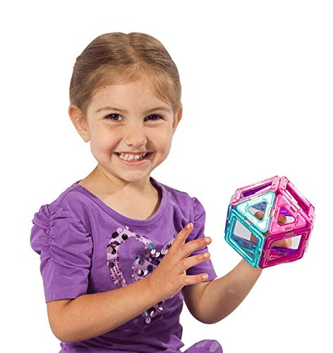 Girls can begin to explore magnetic construction with MAGFORMERS squares and triangles. The open nature of our pieces let small fingers easily begin to build cubes, towers, and magic balls. Fitting perfectly with STEM, kids can lay ideas flat and pull-up into 3D towers.