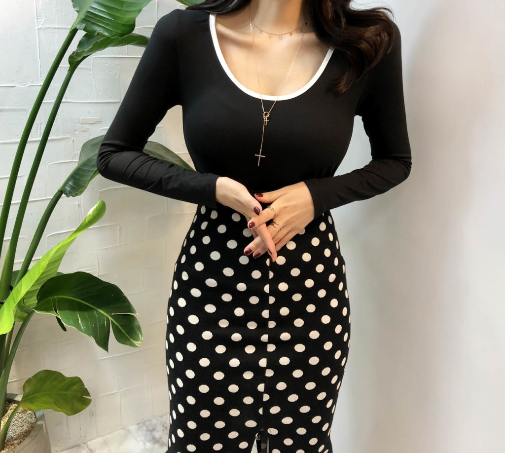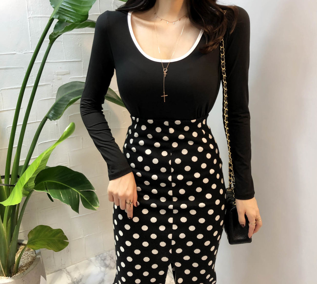 넥선을 배색컬러로 포인트를 주어서