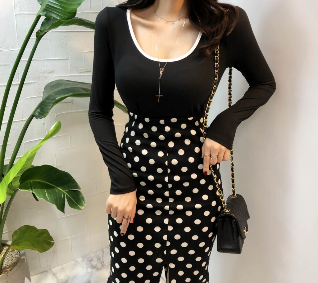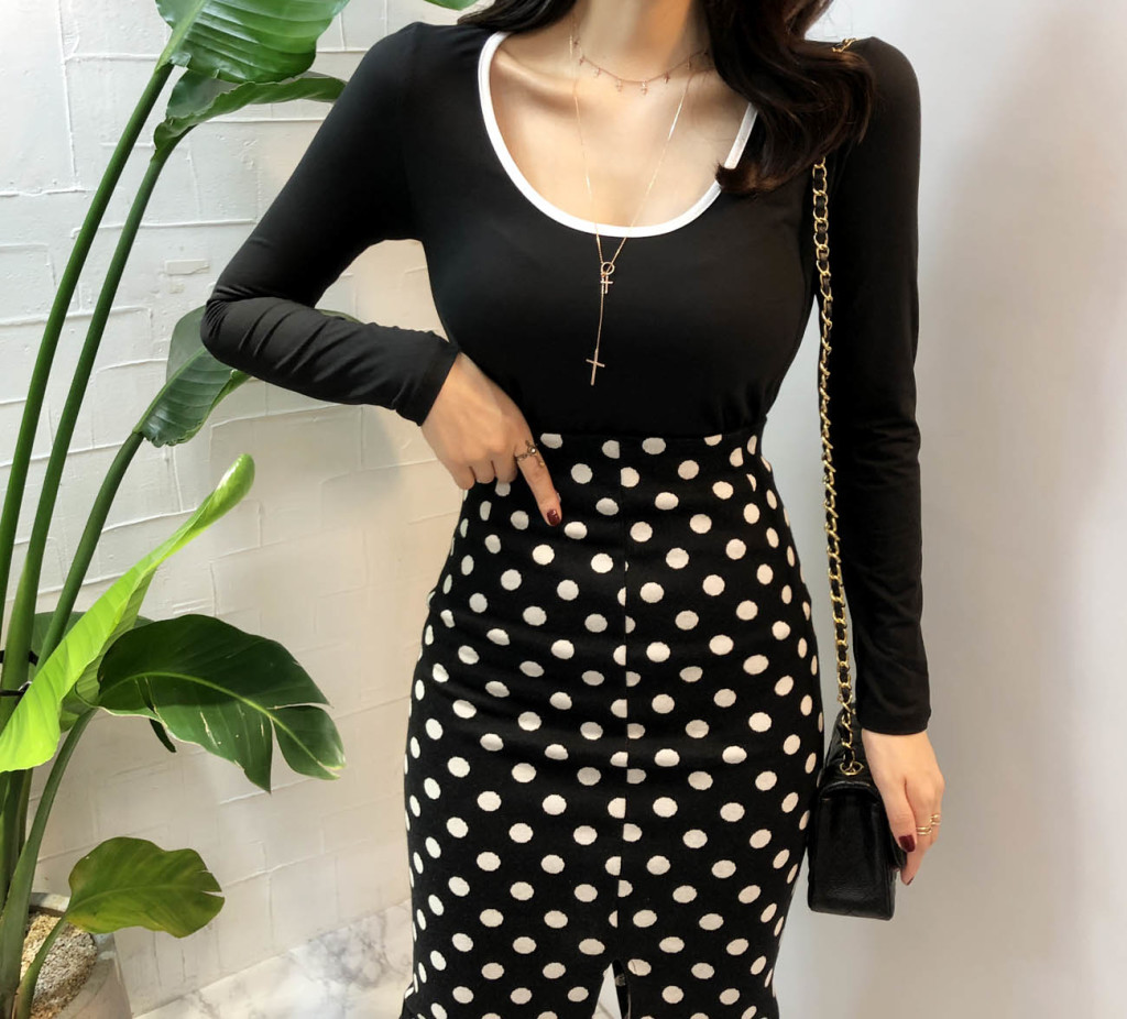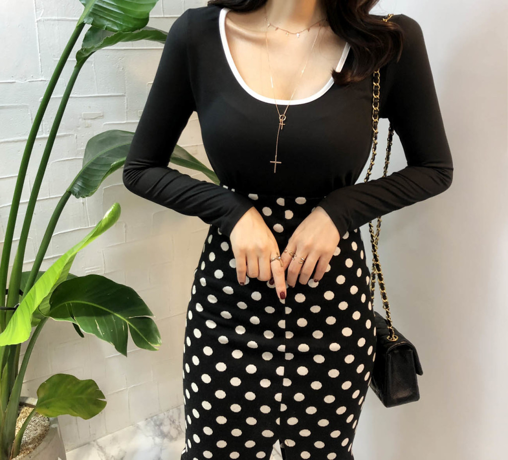 슬림한 핏에 깊은 U넥라인으로