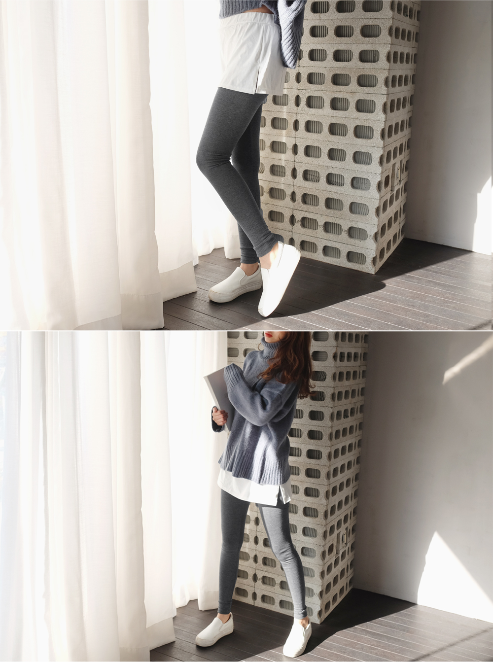 레깅스에 사이드 트임이 들어간 가벼운 스커트를 더해