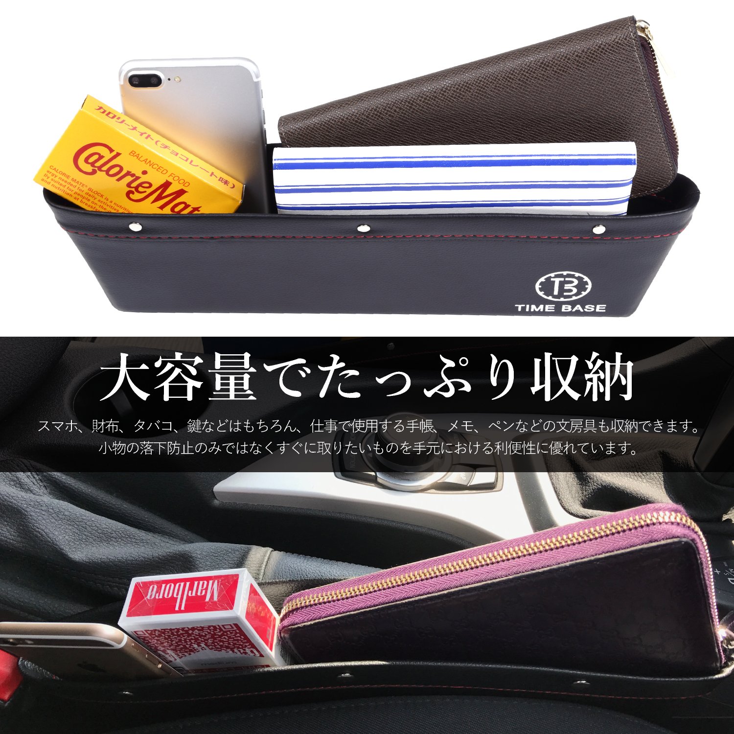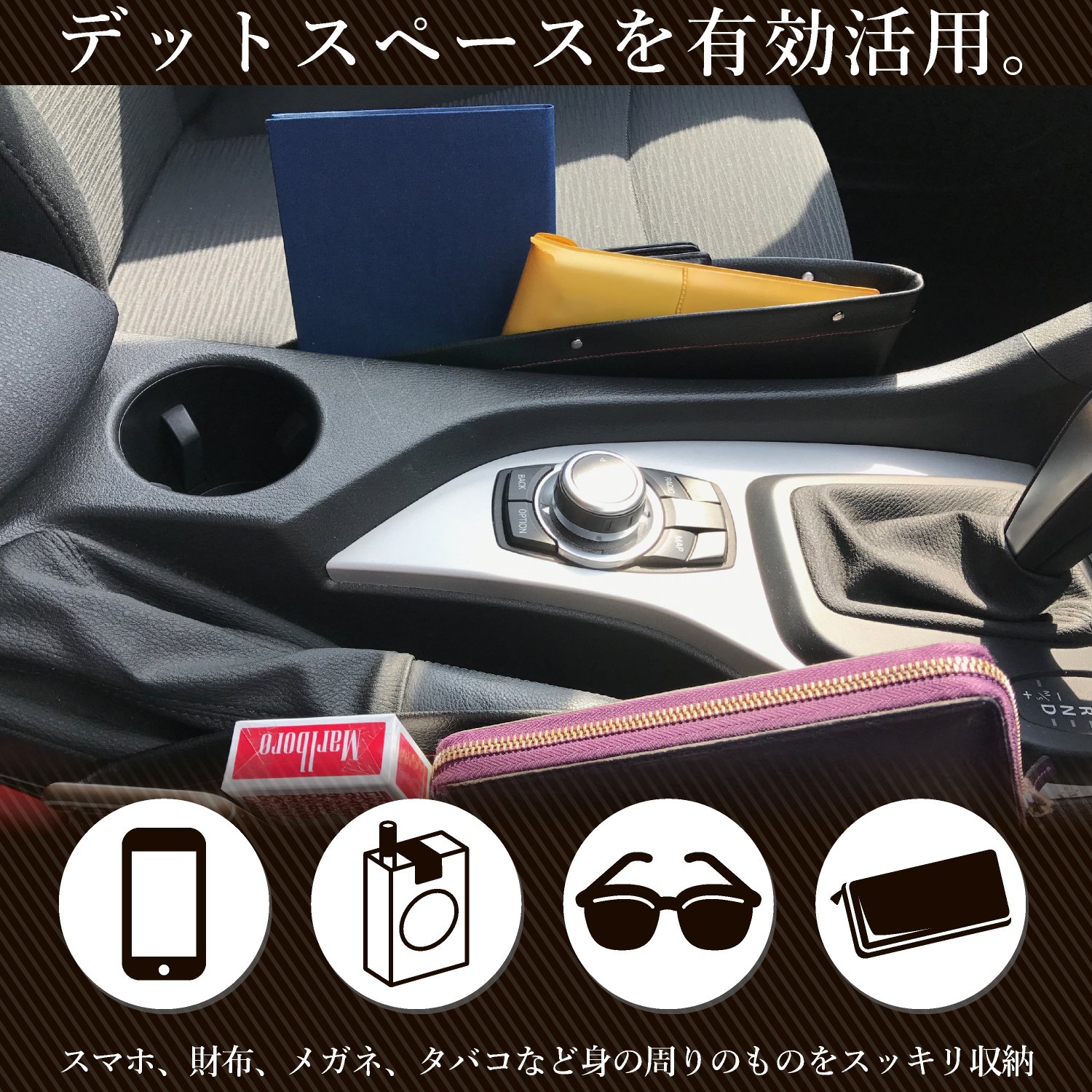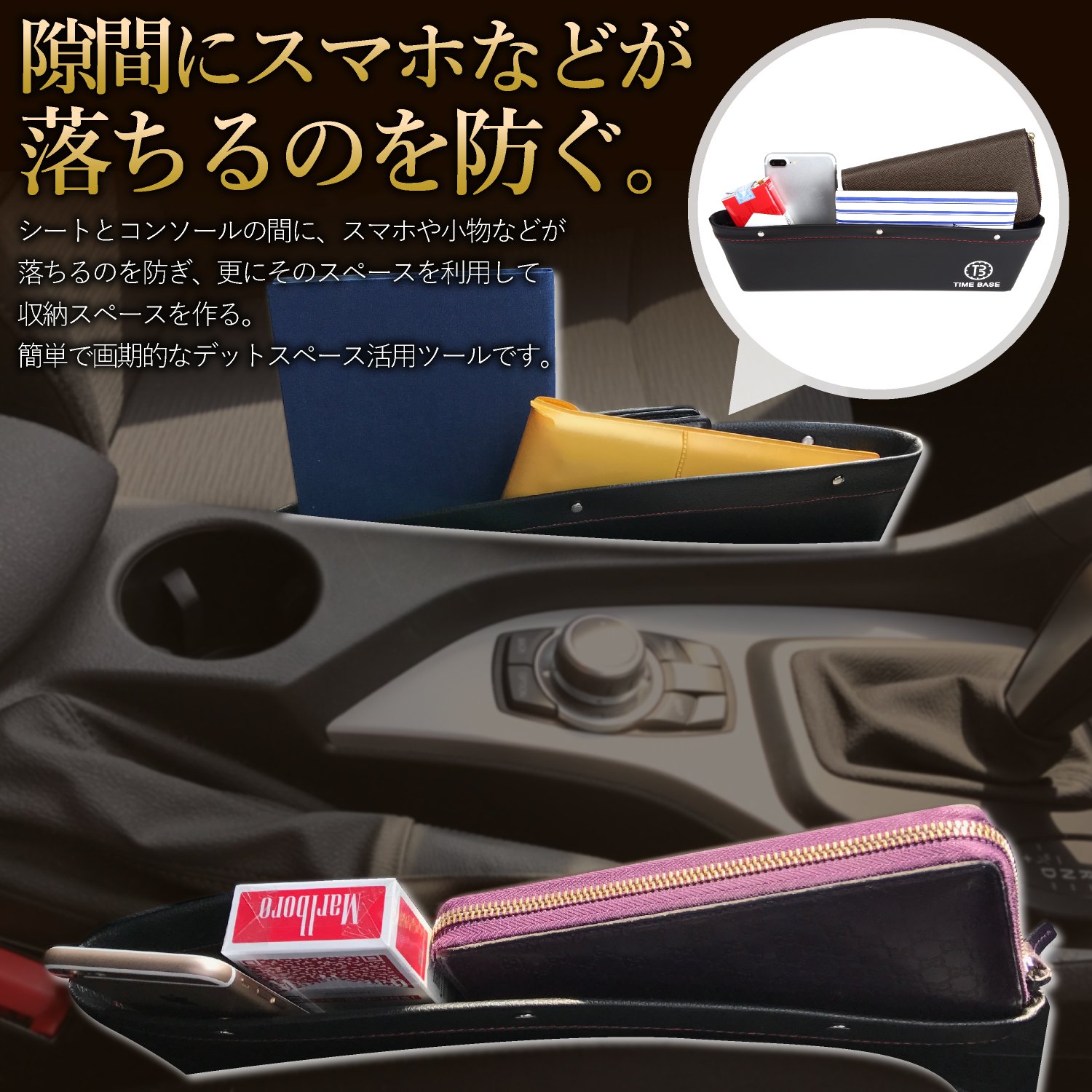 Besides prevention of dropping of smartphones etc., we can effectively utilize between the center console and the seat which was useless space up to now.