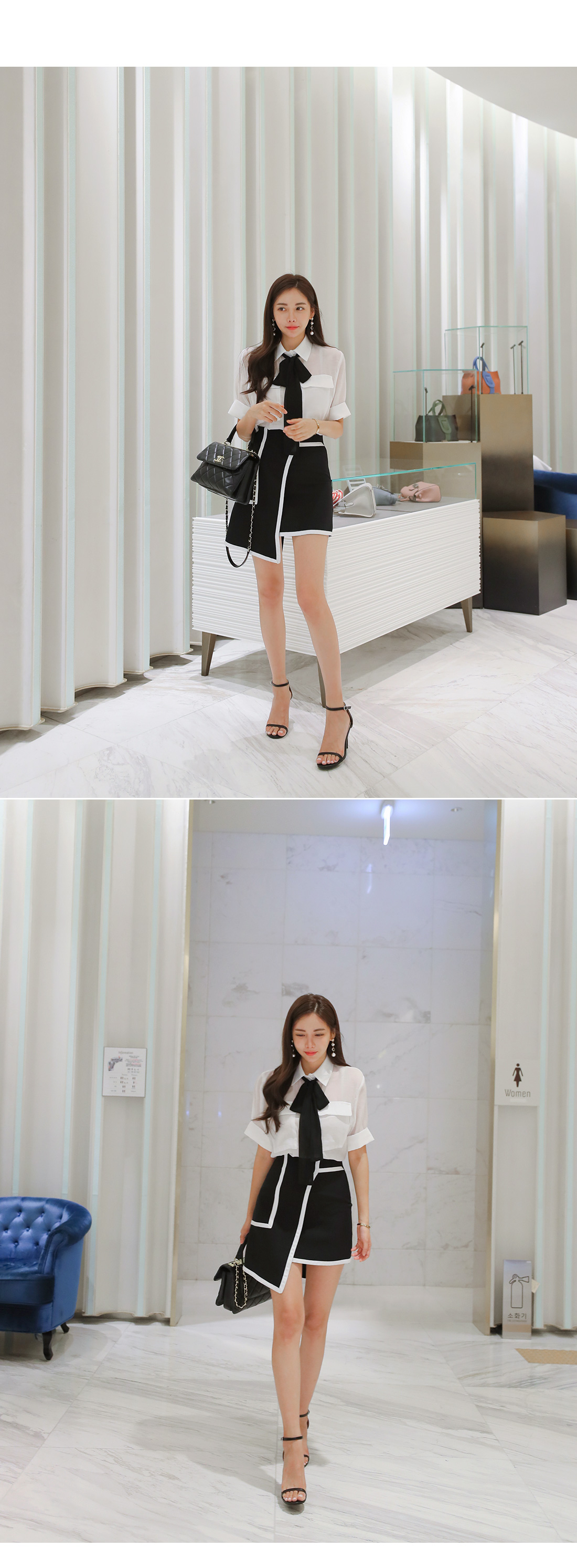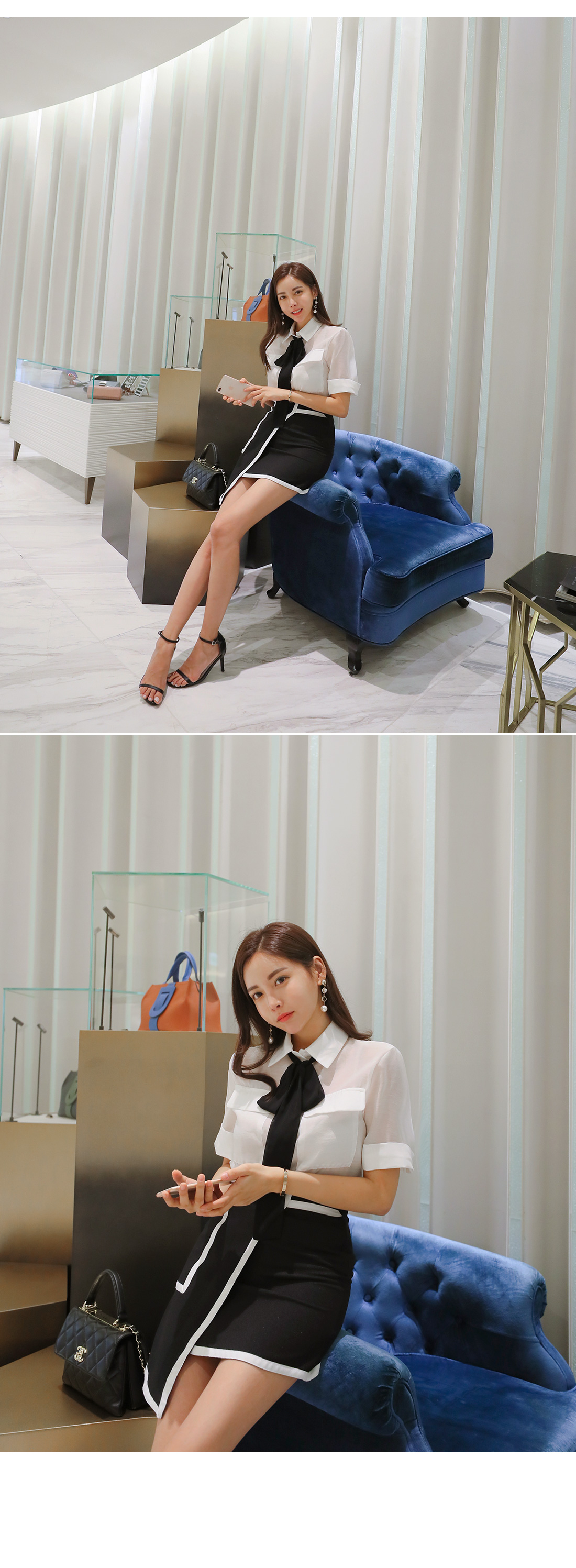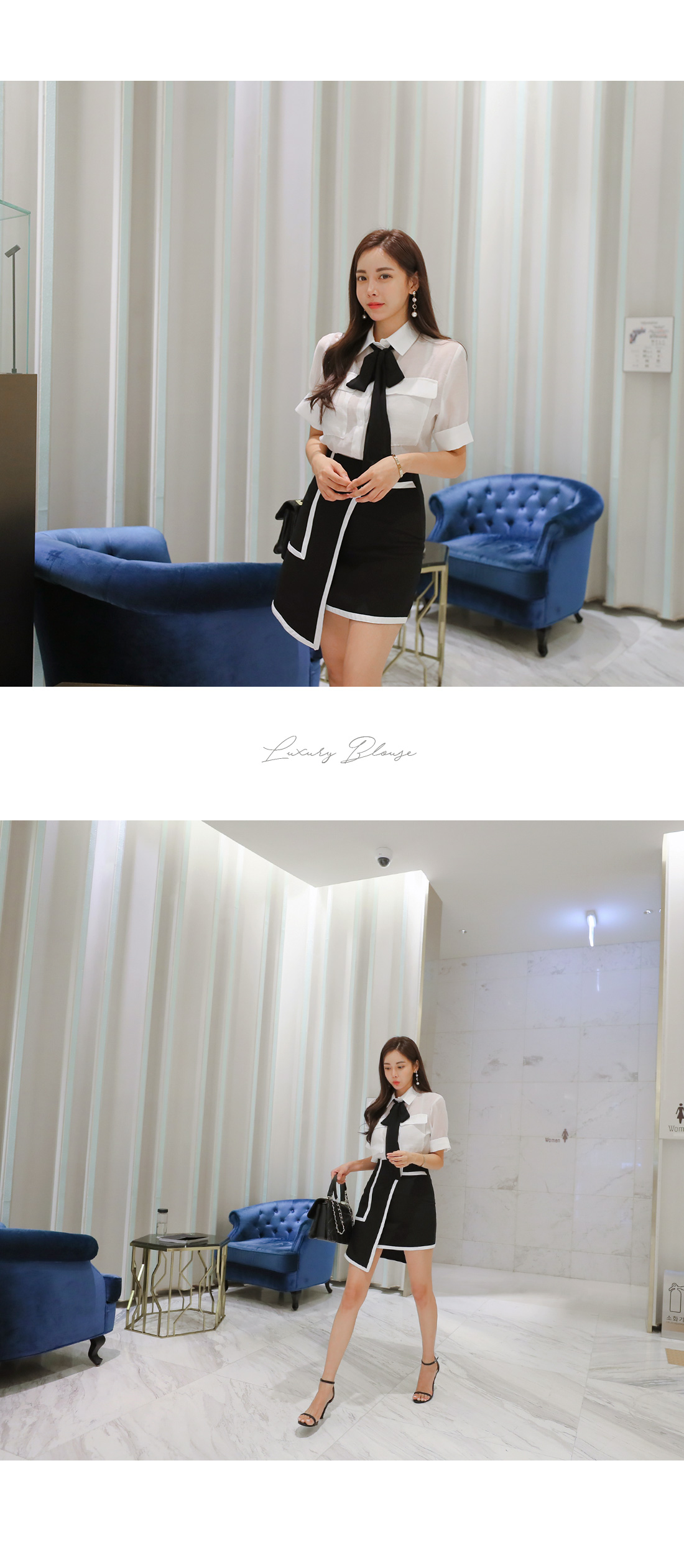 MD COMMENT고급스러운 분위기로 여성스러운 블라우스랍니다.베이직한 셔츠 카라 디자인에 반팔 소매 기장으로 제작되었는데요.여유있는 핏과 기장감으로 부담없이 편안하게 즐기기 좋아요.전체적으로 은은하게 비치는 시스루 소재감으로 은근히 섹시한 무드를 가져갈 수 있구요.바스트 부분에 양쪽 포켓을 주어 실용성을 챙겨주었으며소매 밑단의 롤업 디테일이 더해은은한 포인트를 더해 밋밋함을 없애 주었답니다.블랙 타이가 세트상품으로 따로따로 활용할수 있으며카라에 리본으로 묶어 스타일 연출 해주시면 좋아요.러블리한 포인트를 가져갈 수 있으며 함께 구성 된 리본은 탈,부착이 가능하니 참고해주세요!가벼운 소재감으로 S/S시즌 시원하게 즐기기 좋구요.군더더기 없이 깔끔한 디자인으로 데일리룩, 데이트룩, 하객룩 등 다양한 룩에 은근 세련된 포인트를 연출해 줄 아이템으로 추천할게요!프론트부분 단추로 클로징을 도와드리구요.정사이즈로 함께해주세요 :)COLOR/SIZE아이보리,베이지FREEMODEL FITTING아이보리/FREE