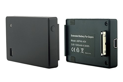 Zusatzakku (ersetzt ABPAK-404, GoPro BacPac 3661-093) mit hochwertigen Markenzellen (1300 mAh Kapazitat) - wird einfach auf die GoPro aufgesteckt.