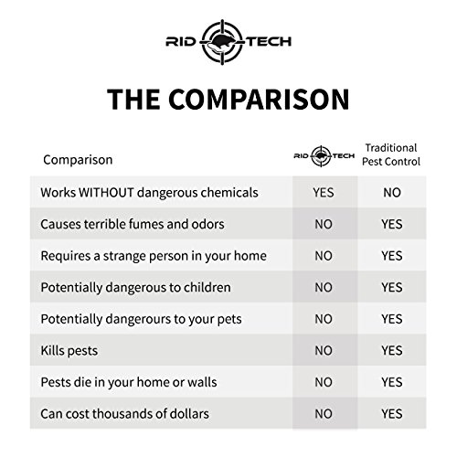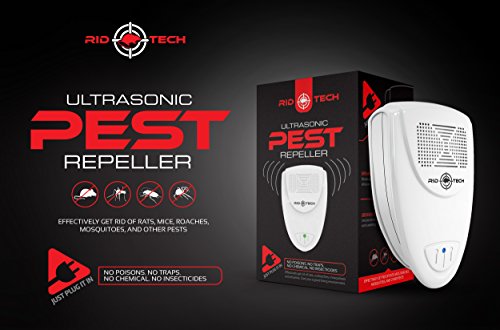 -. Feature : ELIMINATE PESTS FROM YOUR HOME : Rid-Techs Ultrasonic Pest Repeller uses state of the art ultrasonic technology to drive pests away. Pled in to any standard household outlet Rid-Tech uses low fequency sound waves, inaudible to humans and pets, which drive pests out of your home for good. Mice, rats, spiders, roaches, moquitoes, ants; None are immune to the sound and completely leave after a few short weeks of use. / SAVE HUNDREDS ON PEST CONTROL : STOP spending hundreds or even thousands of dollars of costly pest control services. Let the Rid-Tech repeller drive out pests for a fraction of hiring Pest Control services on a MONTHLY basis. / NO HARMFUL CHEMICALS OR POISONS : Forget the harmful chemicals, poisons, and traps typically used in households and by pest control technicians. Rid-Techs Pest Control Repeller is 100% safe and effective. Rid-Tech Naturally drives pests out without killing them. No need to clean up dead insects and rodents. Rid-Techs Ultrasonic Pest Repeller creates an uncomfortable environment for pests so they simply leave. / EASY TO USE : Simply plug in the unit and let the Rid-Tech Repeller do the rest. Use 1 unit per average-sized room with a pest problem. Additional units will be required in larger areas. Areas such as attics, basements, garages and large storage areas may require more than one unit. Perfect Accessory for Indoor Rodent Control. / TEST THE RID TECH FOR 60 DAYS: We aim for a 100% satisfaction rate with all of our customers. Order the Rid Tech Today and if within 90 days you have not acheived the Pest Repelling results you were looking for, we will refund every penny. No questions asked.