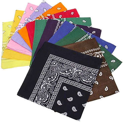 -. Title : BMC 12pc Multicolor Cotton Fabric Extra Large 21 Inch Square Bandannas