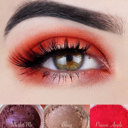 This look includes BLING on the lid, center lower lash line and inner eye. MERLOT ME in the crease. Then layer POISON APPLE in the crease as well. Inner and outer lower lash line. Blend away and voila!